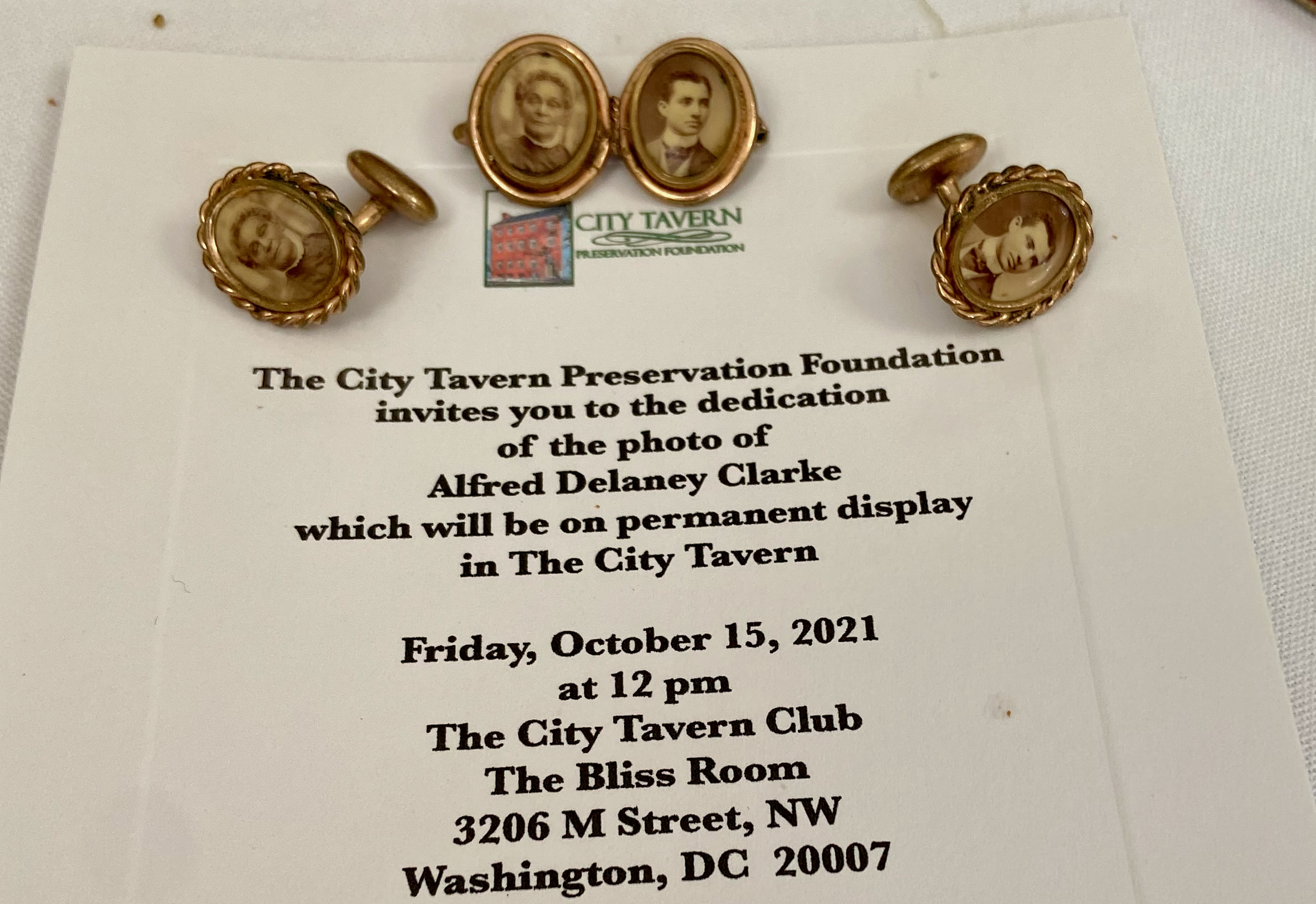 Most recently, a photograph of Alfred Clarke has been installed permanently in The City Tavern, a private club that occupies this oldest historic building in Washington, D.C. Alfred Clarke and his relatives are the only persons known to have lived and worked in this building. The City Tavern is on the National Register of Historic Places.